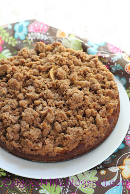 In another bowl combing streusel topping and place over the apples. Bake for about 50-60 minutes, or until a toothpick inserted in the center comes out clean. I baked my cake for 55 minutes. Cool the cake in the pan.