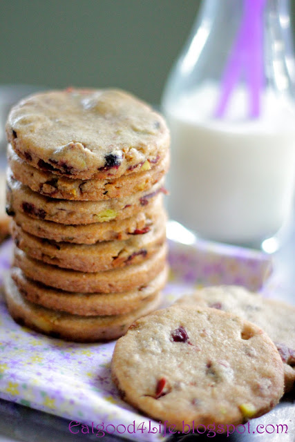 Whole Wheat Cranberry and Pistachio sugar cookies